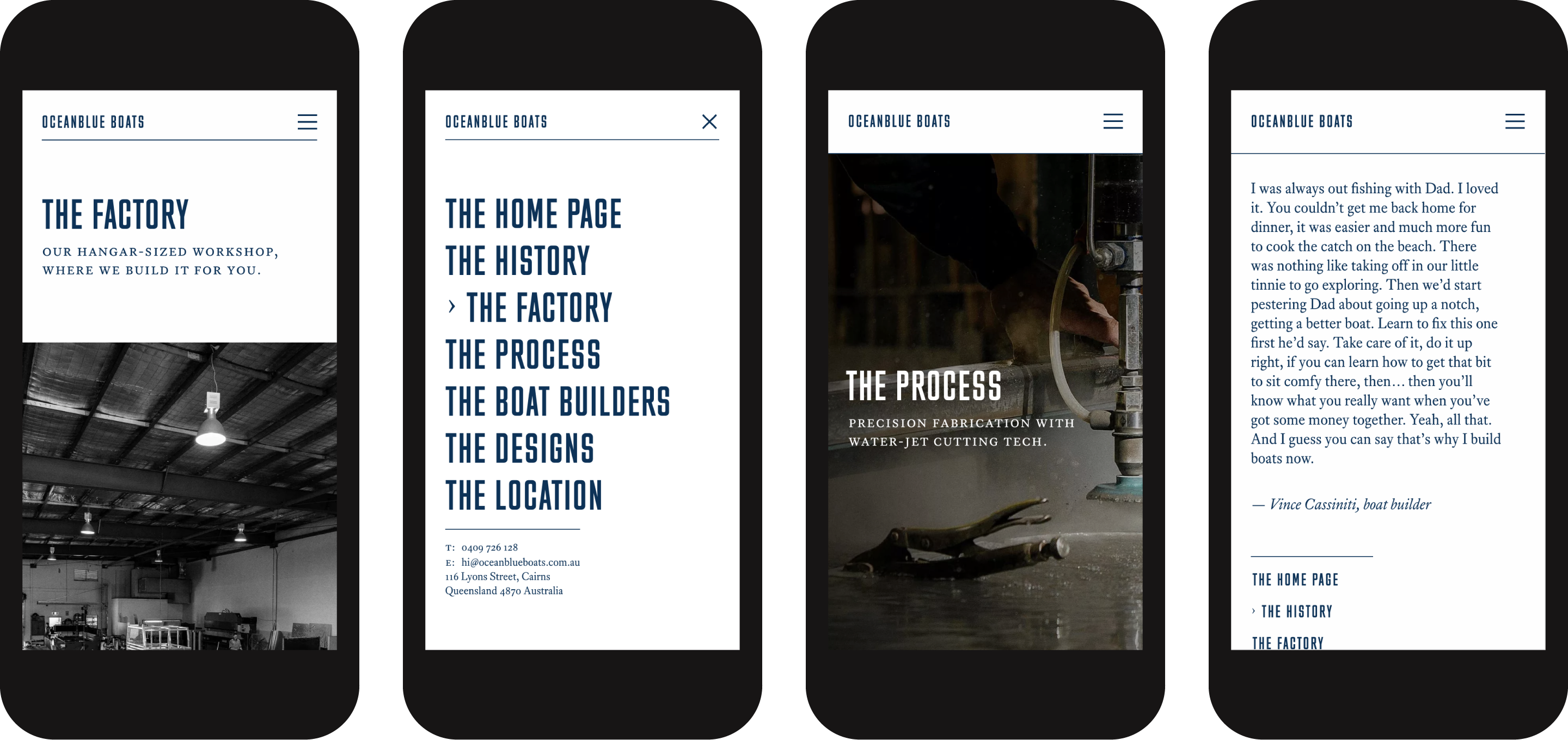 Oceanblue Boats had just moved into a new warehouse space that was four times larger. I was asked to redesign their Branding and build a website around their love for all things boat-making and general fabrication.