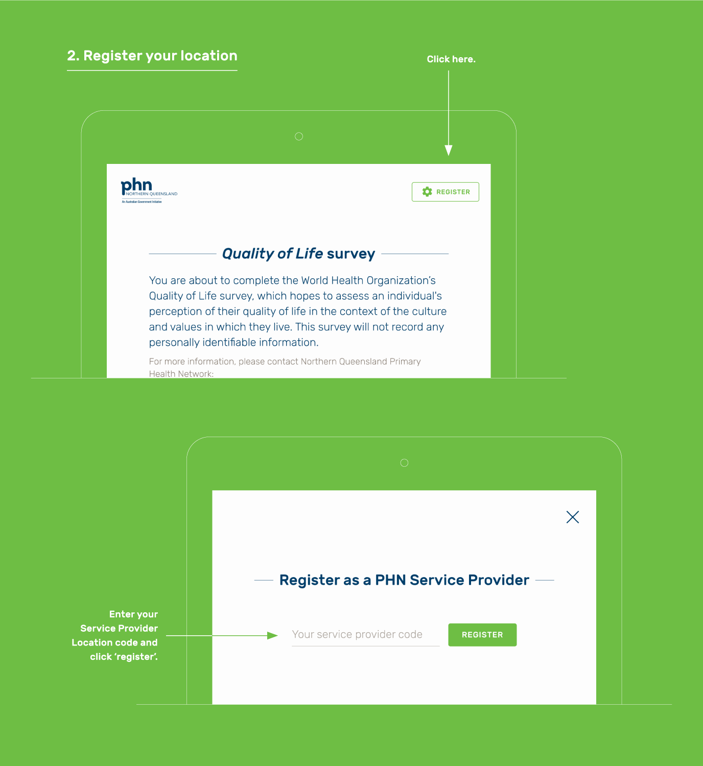 Primary Healthcare Network North Queensland wanted to digitise the World Health Organisation's Quality of Life survey to rapidly and economically build a map of patient well-being in their service areas. We built a maintainable, easy to use responsive website that worked on any screen size, and which securely stored patient responses.